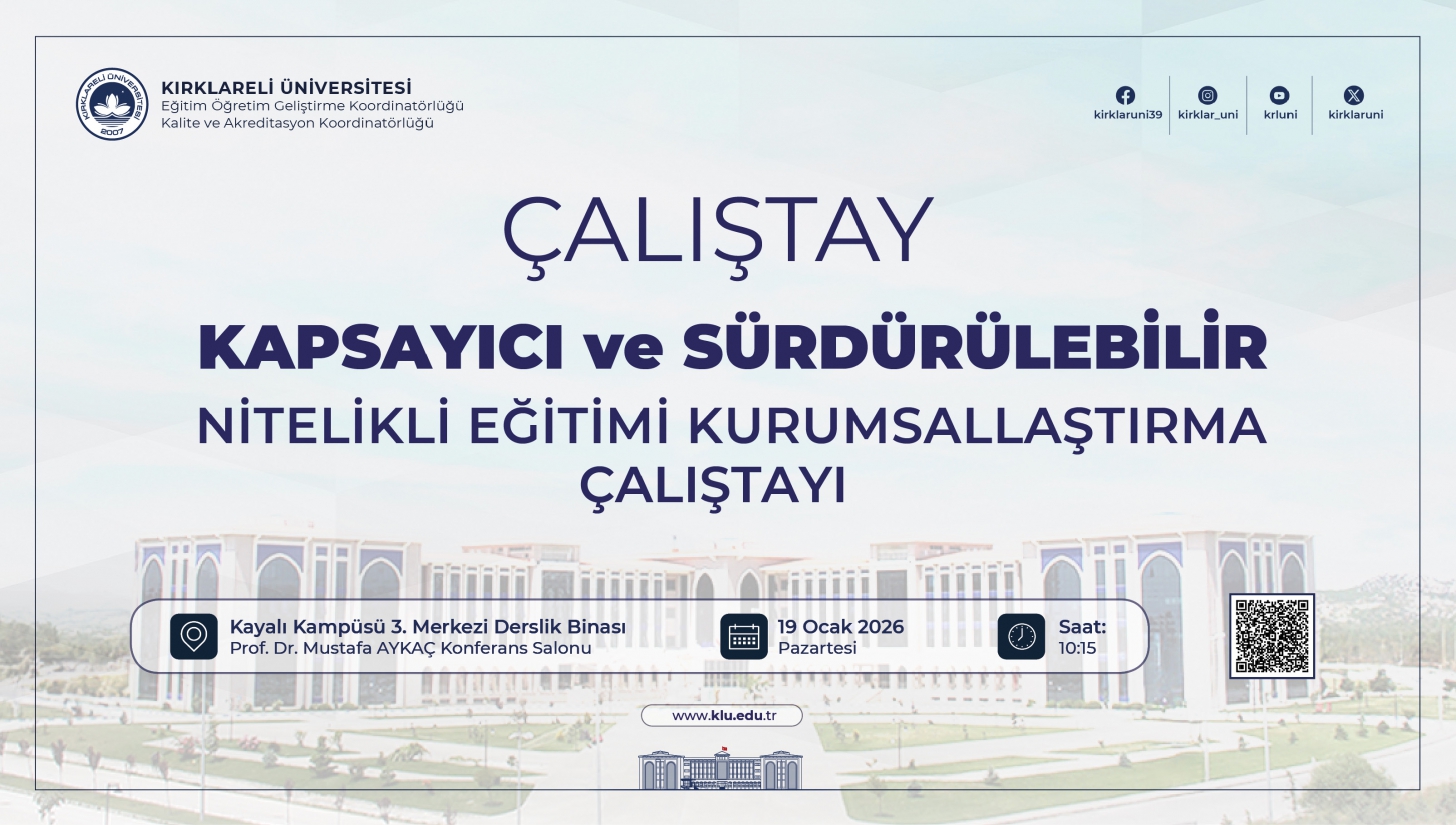 ![]() | KAPSAYICI VE SÜRDÜRÜLEBİLİR NİTELİKLİ EĞİTİM İÇİN UYGULAMA VE İÇERİK GELİŞTİRME TOPLANTISI Eğitim Öğretim Geliştirme Koordinatörlüğü 25/12/2025 102 Okunma